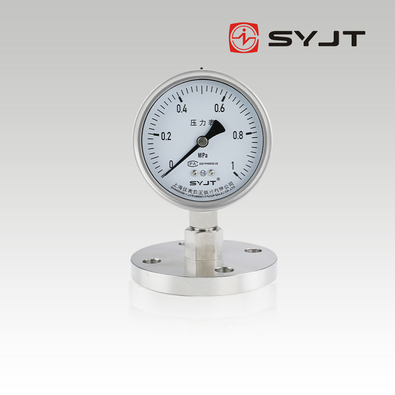 www91ncom集團Y-100BF-MF法蘭(lán)安裝隔膜壓力表,廣泛用於石油、化工、化纖、冶金、電站等工業部門中對耐腐、抗振有較高要求的工藝流程中測(cè)量各種流體介質的壓力。