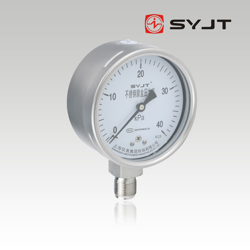不鏽鋼膜盒壓力表是一種精密的測量儀器,主要用於石油、化工、冶金等工業部門以及科研*域中對氣體或液(yè)體介質壓力的測量。以下是關於不(bú)鏽鋼(gāng)膜盒壓力表的詳細介紹: